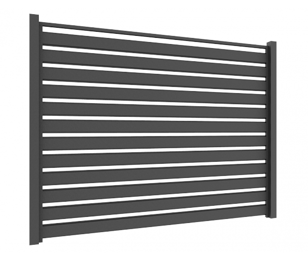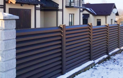 Стійка і надійна конструкція, при цьому виглядає стильно і має всі переваги огорож. Широкі ламелі виготовляються із оцинкованої сталі, яка має високу стійкість до корозії. Застосовується для огорожі: котеджів, заміських будинків, житлових комплексів та багатьох інших.