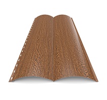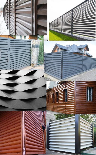 По конструкції така огорожа схожа до типу брусів з натурального дерева.Вона виготовляється окремими елементами, та є простою у монтажі.Так що, навіть зблизька огорожу складно відрізнити від дерев'яної.Міцність та надійність при цьому, зберігаються.А фарбування металевих панелей під натуральне дерево, забезпечують привабливий зовнішній вигляд.